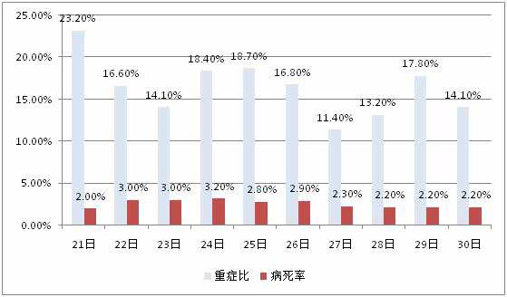 下图显示,武汉肺炎重病比和病死率都比非典明显低。重病比在14%左右,病死率连续三天2.2%。