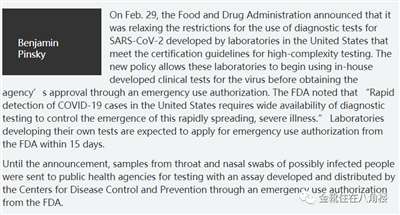 2019年6月,美国食品与药品监督管理局(FDA)规定禁止各州和商业实验室开发自己的冠状病毒诊断测试,即使他们有开发用于检测冠状病毒的PCR(聚合酶链式反应)引物的能力。