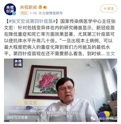 2022年3月20日,张文宏接受央视专访,大谈“接种第四针疫苗”。