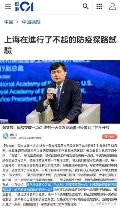 3月14日,张文宏突然凌晨发长文,借分析上海疫情和香港疫情,再次替疫苗站台,并委婉地继续为“病毒共存论”、“全面开放论”进行鼓吹。