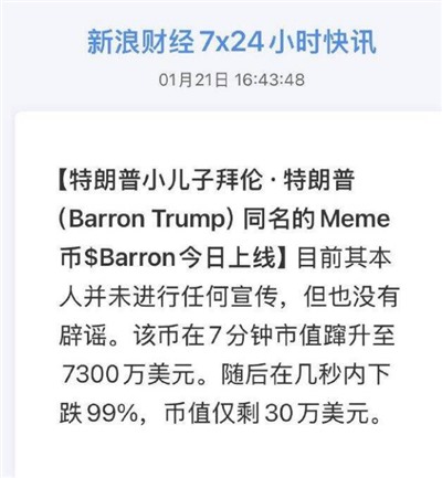 这两天特朗普一上台先发币,其本人,妻子,儿子先后发行虚拟币,两天割走的钱可能比特朗普家族一辈子赚得还多。这就是资本主义的宿命,拼搏质朴的工业化黄金时代终究要被金融化的腐朽狂欢所终结。