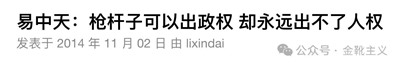 十余年前,易中天公开发表文章《从来都是枪杆子里面出政权,却永远出不了人权》。