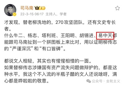 恰如2021年夏天时还占据着各大官媒头版头条的“遏制资本无序扩张”早已销声匿迹,看看几年前似还风光无限的潮头者们,如今仿佛一块块被用完就扔的臭抹布……而如果说连马老湿都可以焕发新生,那么易中天的重新登堂入室好像也不那么难以理解。