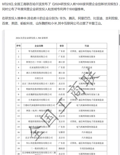 对我国今天成功的科技企业进行考察,也能看到对创新和研发长期投入的决定作用。以榜单上前十的腾讯和华为为例,这两家公司同时也在中国企业研发投入榜单中包揽冠军、亚军宝座。其中,腾讯2024年研发投入707亿元,七年累计近四千亿,全球专利申请公开总数超8.5万件,授权数量超4.5万件;华为2024年研发投入则高达1797亿元。
