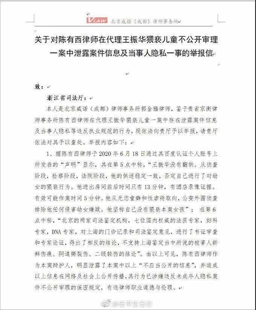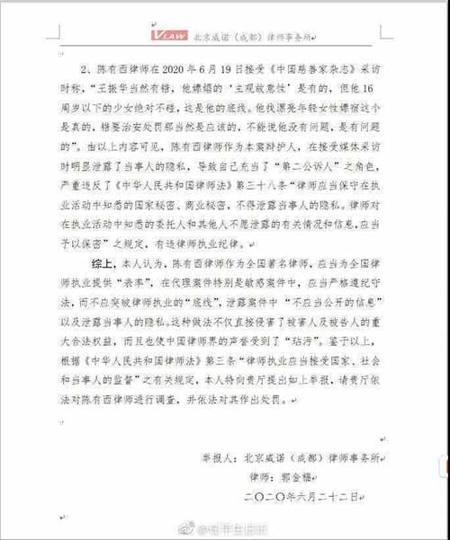 陈有西是不是违法还不能下结论,但已经有律师同行举报他违规了。