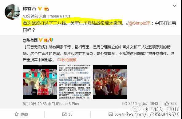 陈有西这种水平不高还自我感觉特别良好的个性,不仅表现在他的专业里。有一次他在一条嘲笑别人“低智无底线”微博是这么发明历史的: