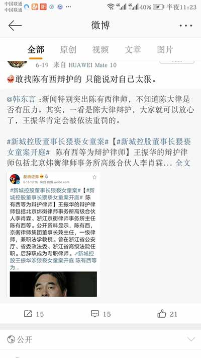 但要成为全国范围内的名律师,光靠陈有西在地方积累的那点人脉还是不够的,还要有足够的舆论曝光度。陈有西最擅长的是舆论操作,他的名气与他在网络上的“耕耘”是分不开的。
