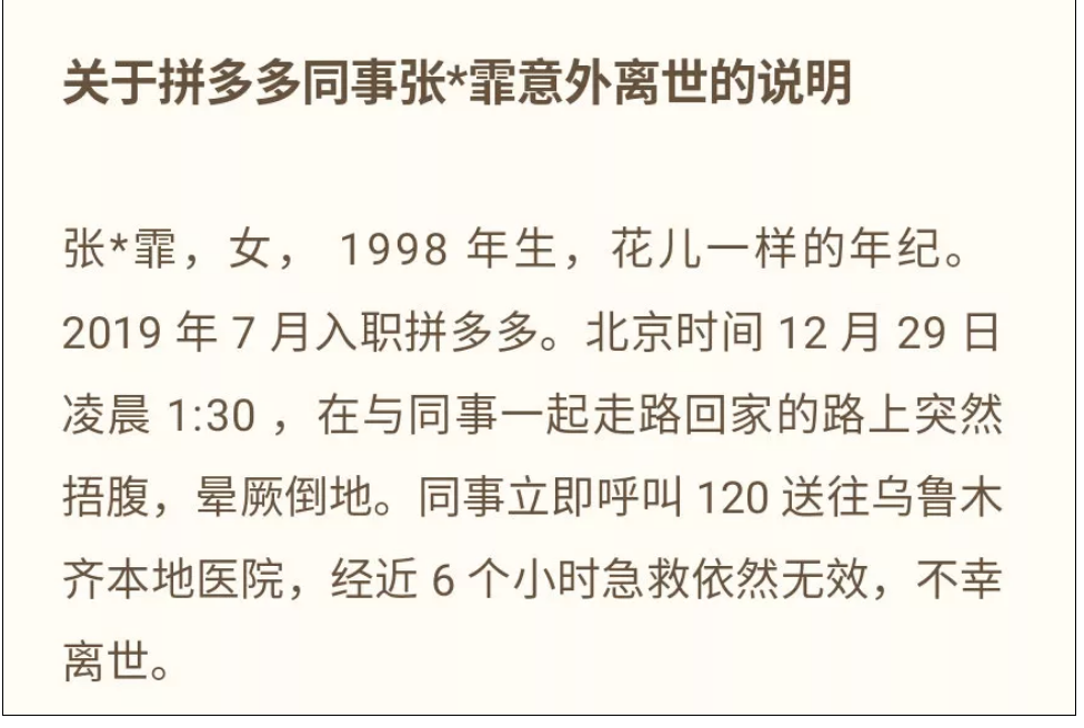 这个话题,要从拼多多的一名23岁女员工凌晨加班猝死讲起。