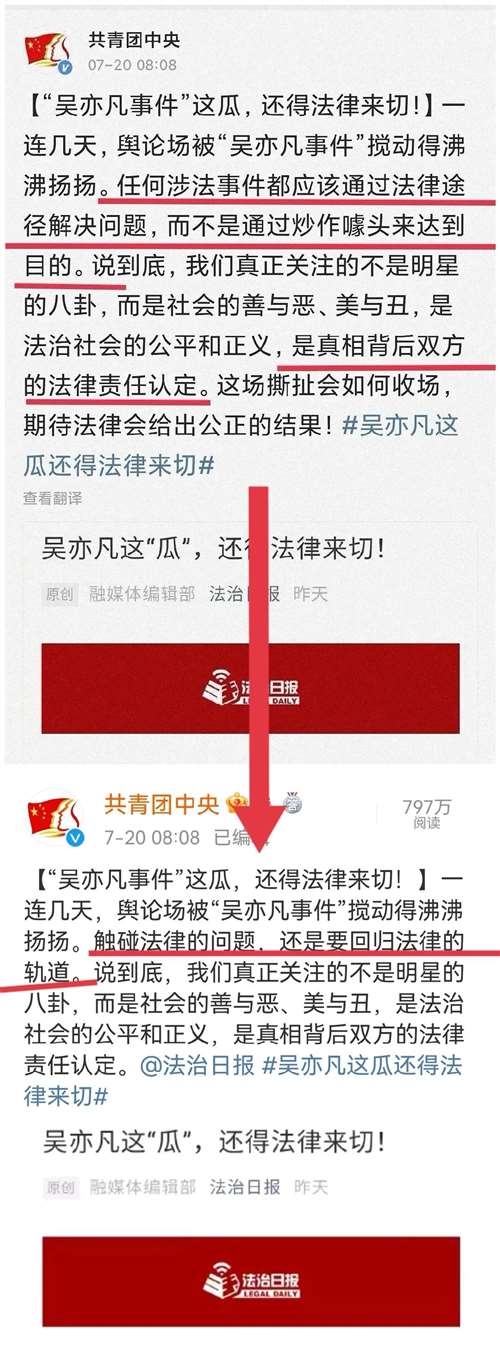 舆论风暴,还没有真正消退迹象。共青团中央在微博上转发《法治日报》一篇题为《吴亦凡这“瓜”,还得法治来切!》的文章,不料引起“洗地”质疑,反被网友质问“你们到底想说明什么?”