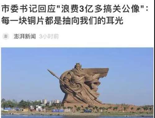 各大官媒同时报了一条新闻,市委书记回应"浪费3亿多搞关公像":每一块铜片都是抽向我们的耳光。