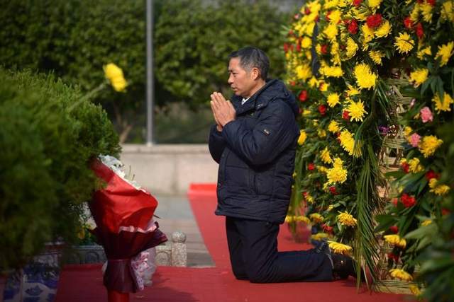 韶山毛泽东铜像前长跪叩拜的群众
