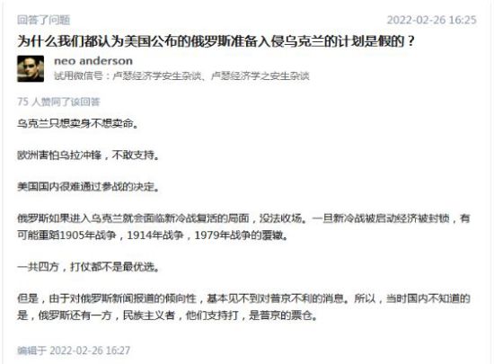 国内有些媒体,不知道该说他们些神马好了。如果用报道土鸡货币危机一半或者美国疫情十分之一的精力,报道一下俄罗斯国内经济困难,民众不满情绪高涨的负面的情况,也不会对这次战争造成这么大误判。结果,基辅的华人和留学生,完全没有思想准备,真是坑死人不偿命。