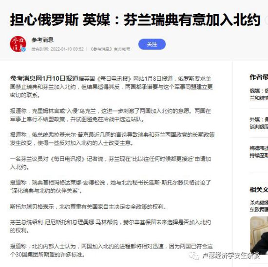 瑞典和芬兰因为担心俄罗斯的武力威胁,本来就有加入北约的意图。普京进攻乌克兰弄不好刺进两国最终做出决定的成为临门一脚。