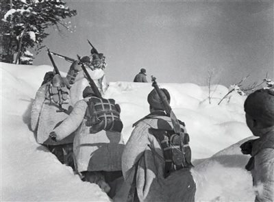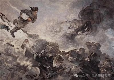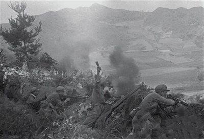 【1951年第五次战役中,志愿军先头部队渡过临津江后,抢占制高点绀岳山】