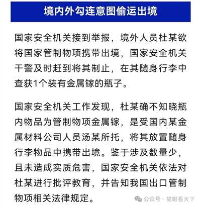 11月4日,据国家安全部政务新媒体报道,近日中国安全部门携手海关,成功挫败了一场美国间谍精心策划的镓金属走私行动,这一事件瞬间引爆了舆论场。