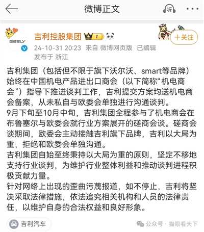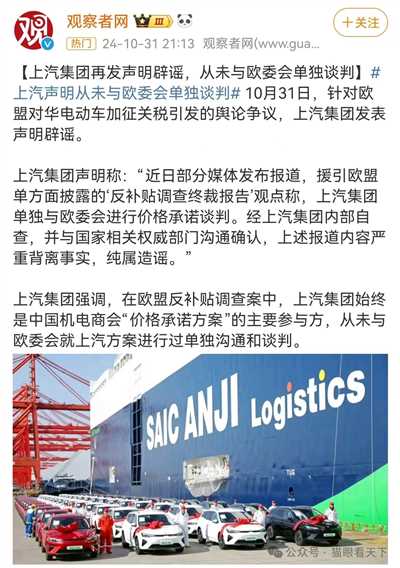 就在近日以法国为首的欧盟通过对华电动车加征关税一事中,网上再次曝光出有几家中国车企私下与欧盟进行谈判,企图以此获取企业的私利。这条消息应该是欧盟先发布的,但并未点名是哪几家。或许这是欧盟的离间之计,或许确实有几家想当内鬼的企业。但不管怎么说,对于见惯了内鬼的网友们来说,这种情况并不令人惊奇。