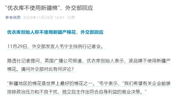 就在这两天,优衣库柳井正在接受BBC采访时表示,优衣库不使用来自中国新疆地区的棉花。由于上一次西方炒作新疆棉还是在三年前,所以国内舆论对此颇为错愕。