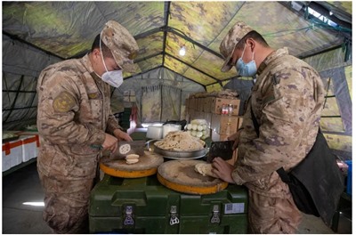 解放军炊事班在为灾民做饭,确保大家能吃上热腾腾的饭菜,而不是让他们用冰冷的面包和矿泉水充饥。