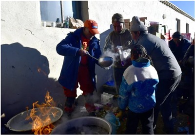 在定日县灾区,你看不到人与人在争抢食品和物资,你能看到的是互相推让。