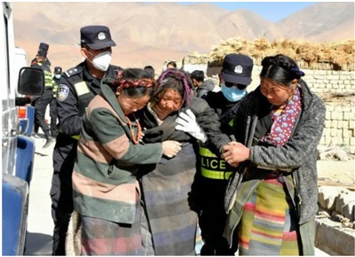 半小时后,震中地区开始破拆救援。西藏森林消防前指3车带特勤大队90人、那曲大队65人、日喀则大队50人共215人向震中方向机动。