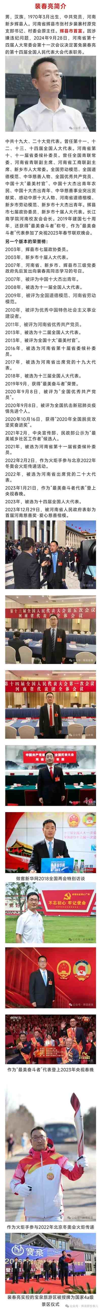 今天我们来分析一下原全国人大代表、河南省委候补委员,河南辉县首富裴春亮的儿子裴将的简历。