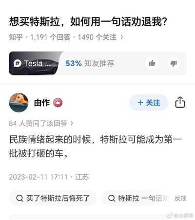 但群情激愤的美国人压根没把川普的警告放在心上,在他们看来,用“U型锁”把特斯拉砸了个稀烂不过是在“为国除奸”,“替天行道”。怪就怪在,之前哭着喊着“U型锁”“义和团”“碍国贼”“抵制X货,不如抵制蠢货”“砸得是X国的车,断得是同胞的饭碗”的殖人集体失声了。