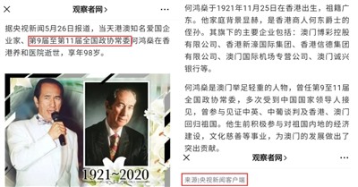 何鸿燊死的时候,还有人拿他与李嘉诚做对比,来论证何鸿燊是“爱国”的,是“进步”的。