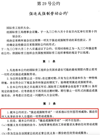 笔者查询了国际劳工组织第29号公约第2条定义的强迫或强制劳动:
