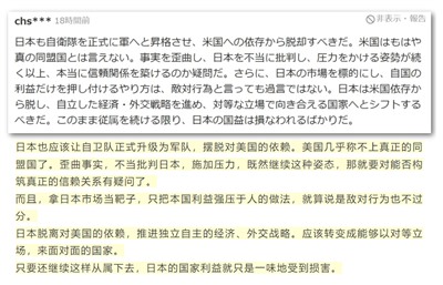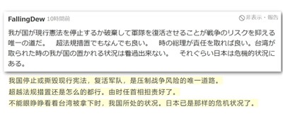 R本广大民众也认为应该让自卫队升级、要撕毁现行宪法、弯弯有事就是R本有事。你们都看看,这是不是好好日子都不想过了。
