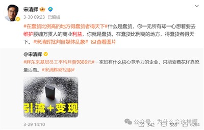 事实上,宋清辉批判的所谓胖东来靠流量活着,恰恰是宋清辉这种所谓经济学家的日常而已,他是典型的贼喊做贼,我们且看看他微博中那颠三倒四语无伦次的内容。