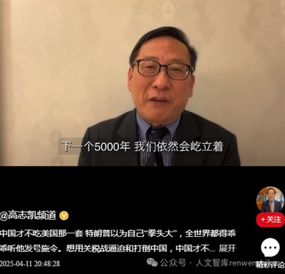 “使徒们当然会说,国难当前,人家卡你脖子,你就是要吹牛逼。难道他吹了这句牛逼,104%的关税会下降吗?中国经济三架马车这一和16%的市场份额他高教授这句牛逼产生的经济效益能被上吗?”