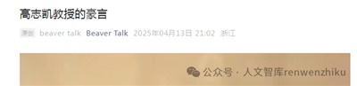 2025年4月13日,公众号“BRAVE TALK”发表了“BRAVER TALK”的文章,题目是《高志凯教授的豪言》,不妨欣赏一下:
