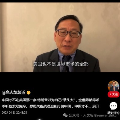 你也别自作多情,高志凯讲的“WE 我们”,没有包括你!沿海那些工厂的厂主、工人和家小,也不会把你当作个人物,不会听你的胡说八道!关于中国政府不屈服于美国的关税威胁,“我们”是支持的!“我们”,是众志成城的,是万众一心的!是完全服从服务于国家关税斗争大局的!因为我们知道,关税斗争,最终会维护我们的根本和长远利益!倒是美国政客和美国霸权的利益,恐怕维护不了了。