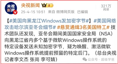虽然特朗普和马斯克把美国搅了个地覆天翻,但美国国家安全局(NSA),仍然在有条不紊地运作着。今天,黑龙江哈尔滨市公安局,悬赏通缉3名美国特工。
