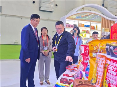 展会首日,商务部国际贸易经济合作研究院高世平、河南省商务厅二级巡视员费全发、漯河市政协副主席周新民、漯河市商务局局长赵晓丹等专程考察南街村展位。销管办主任王飞系统汇报了参展产品结构及市场布局战略,重点介绍南街村鲜拌面工艺创新和调味料生产线扩建项目。当日,王飞还接受了大河财立方、海口电视台等媒体专访。