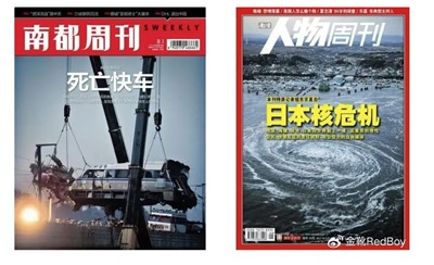 然而同年早先日本发生大地震核泄漏时,同属南方系阵营的《南方人物周刊》当时则是画风迥然,以“日本给世界献上一课”为专题,刊登头版封皮。