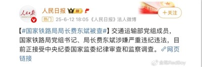盛光祖落马三年后,2025年6月12日,他的老部下费东斌——现任交通运输部党组成员,国家铁路局党组书记、局长,涉嫌严重违纪违法,任上接受中央纪委国家监委纪律审查和监察调查。