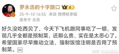 尽管罗永浩一再声称他不反对预制菜,但这一次支持罗永浩的网民无疑绝大多数是反对预制菜,至少不希望自己吃到的是预制菜。