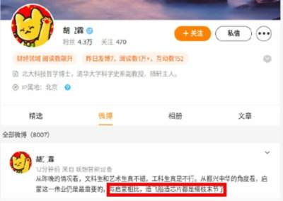 还有一个顶级大学的副教授,说什么“从振兴中华的角度看,启蒙这一伟业仍是最重要的,与启蒙相比,造飞船芯片都是细枝末节了。”