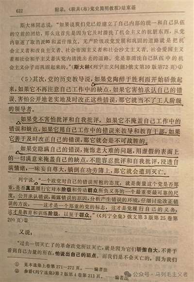 特别是其中的第三、四、五、六条,我更觉得很有现实意义,值得多次重温!我希望更多同志能都来重读《联共(布)党史简明教程》结束语,特别是那些身居高位的党员领导干部,真正把这六大准则应用到自己的工作、学习、生活中,成为我们进行伟大斗争和自我革命的强有力武器!(:尺寸,北京某高校教授)