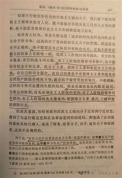 1941年5月,毛泽东主席在《改造我们的学习》一文中说:“《苏联共产党(布)历史简要读本》是一百年来共产主义的最高的综合和总结,是理论和实际结合的典型,在全世界只有这一个完全的典型”。而其中斯大林亲自撰写的的《<联共(布)党史简明教程>结束语》更是总结了所有共产党人应该牢记的六条重要准则,特摘录如下: