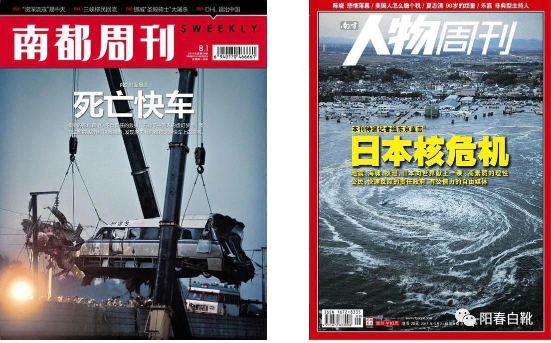 然而同年早先日本发生大地震核泄漏时,同属南方系阵营的《南方人物周刊》当时则是画风迥然,以“日本给世界献上一课”为专题,刊登头版封皮。