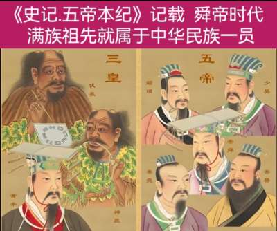 史书记载,三皇五帝时期,即,舜帝时期,满族祖先“肃慎”就属于中华民族大家庭的一员。《竹书纪年·五帝篇》记帝舜二十五年“息慎氏来朝”。《史记·五帝本纪》载舜帝时期“北山戎、发、息慎”臣服中原。《史记·五帝本纪》记载,舜帝“合万国”,统治疆域划至“息慎”所在的东北地区。“息慎”是“肃慎”的古称,是满族祖先 。对此,尽管有史书明确记载,但中国文化界不敢承认,因为要遵照西方制订的考古标准。
