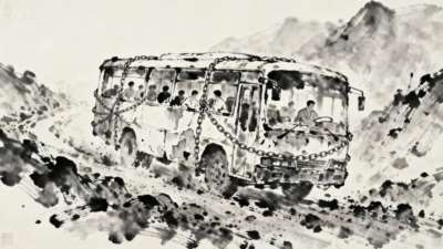 再看那司机,坐在前头的旧木凳上,背驼着,手搭在方向盘上,却没什么力气。眼睛半睁半闭,里头一半是慌,怕车突然散架,自己和一车子人都要摔进泥里;