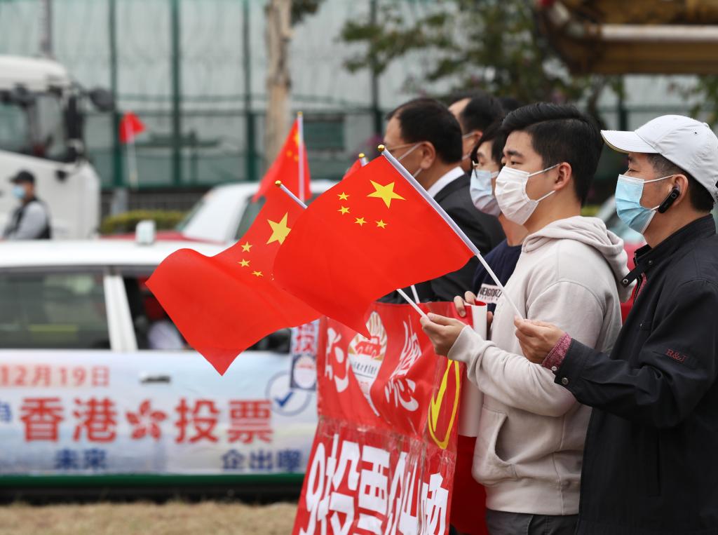2021年12月18日在香港街头拍摄的呼吁市民投票的活动。(新华社记者 李钢 摄)