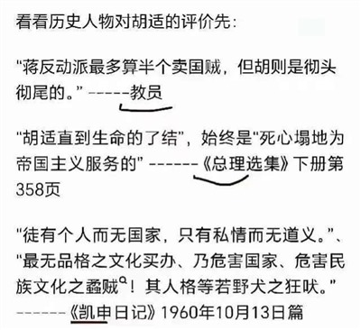 本来,大陆的历史课本对胡适是留了很大面子的,他的那些负面作为被隐去不提,因此,很多人只知道胡适对新文化运动有所贡献,却不知道真实的胡适有这么多污点,能够让国共两党的领袖都给予负面评价。