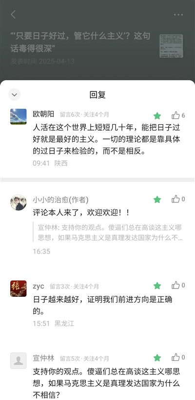 这也正是这类留言中反复出现的一个叙事陷阱:他们从来不谈“谁的幸福”,只谈“有没有幸福”;从来不谈“通过什么手段实现”,只谈“有没有结果”。他可以轻描淡写地说“如果放弃马克思主义能让百姓幸福那又有什么不好”,但他绝口不提,在现实资本主义秩序下,这种所谓的“幸福”是如何被生产出来的,它是不是建立在另一部分人的痛苦之上。