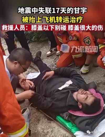 甘宇太惨了,震前还肥嘟嘟的小伙子,如今已经成了干巴巴的小老头。他一边哭一边说:今天遇到好人了,不是你的话,(我的)命可能就没了。