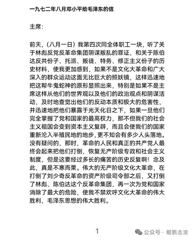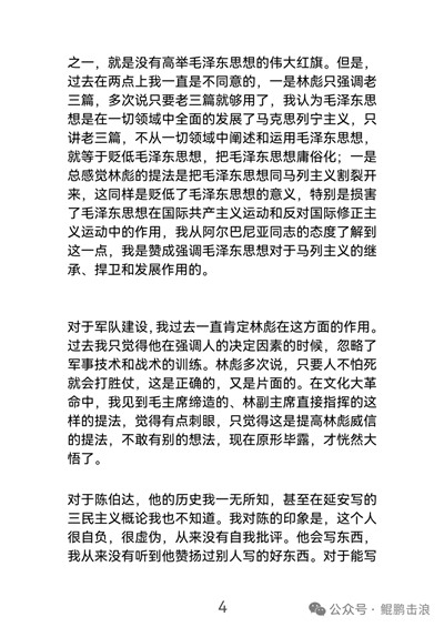 1977年的一封信:主要是表达了对世世代代准确完整地用毛泽东思想指导我们的社会主义工作,把国际共产主义事业推向前进。