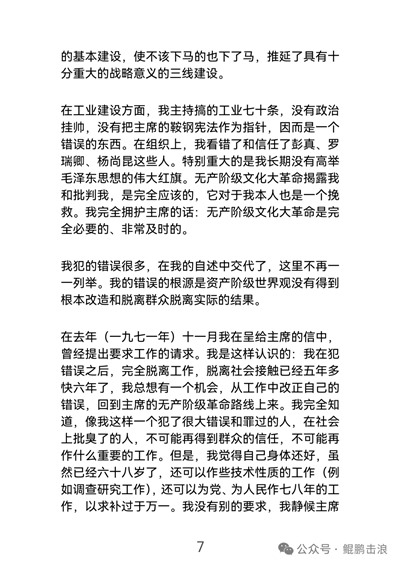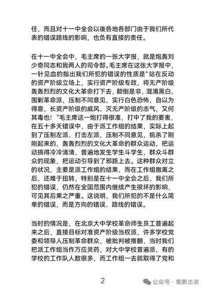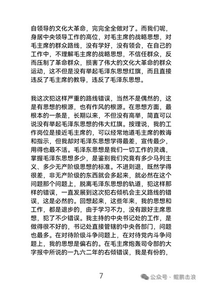 至于说“永不翻案”,指出的工作和思想路线上所犯的错误,在其《在中央工作会议上的检讨》中进行了说明: